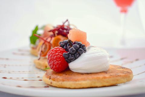 Fluffy pannenkoeken met vers fruit en een vleugje poedersuiker die elke maaltijd een feest maken.